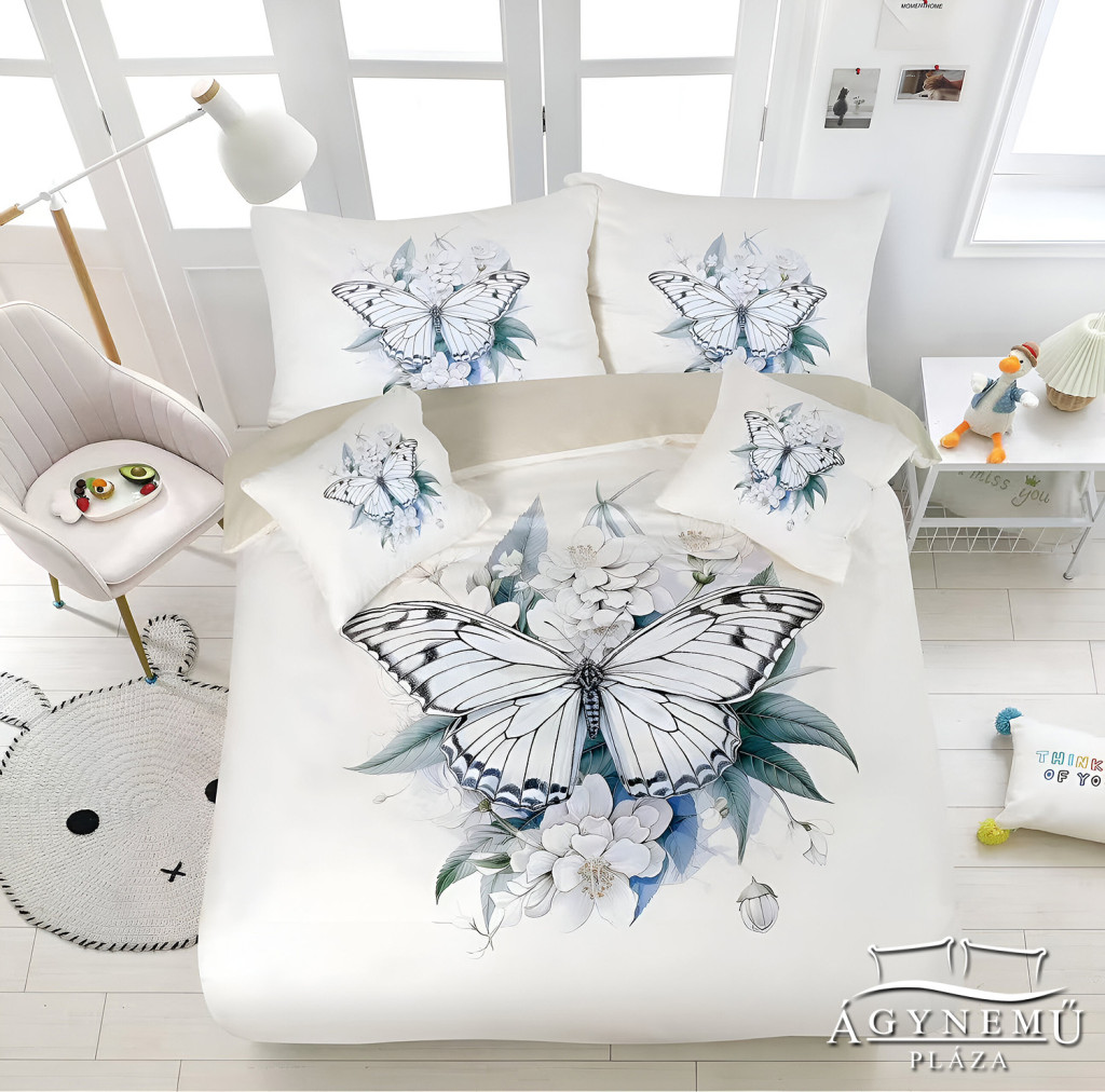 3 részes ágyneműhuzat garnitúra, gyönyorű nagy Pillangós mintázattal. Hálószobánk legékesebb pontja, az ágyunk, ennek egyedisége pedig egy gyönyörű ágyneműhuzat garnitúrával lehet a legjobban előtérbe helyzeni.