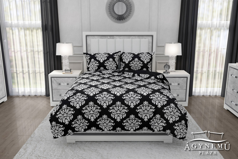 Fekete absztrakt Ágyneműhuzat garnitúra, 140x200 cm, 70x90 cm