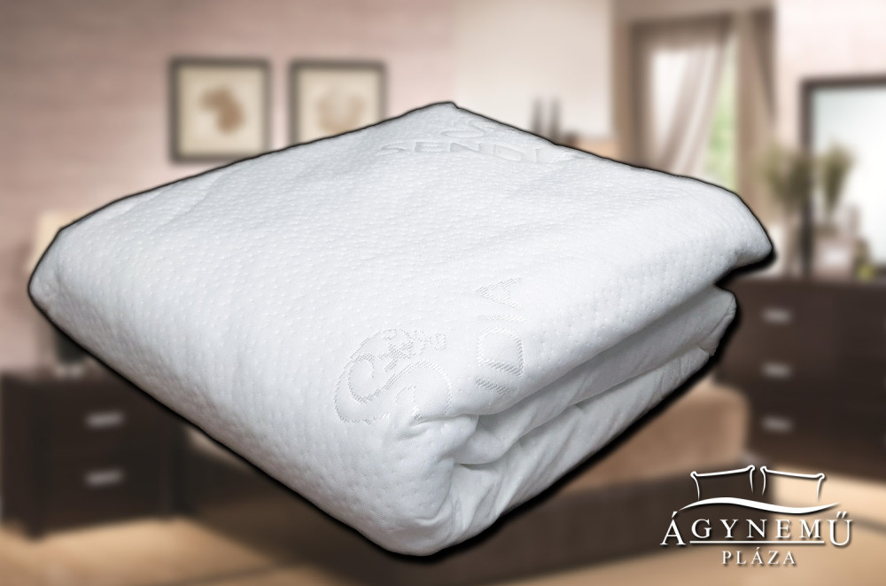 A vízhatlan gumis lepedő felső rétegen, egy hagyományos puha lepedő található, maga a vízhatlan réteg pedig bevarrva a matracvédő alsó részébe, így teljesen komfortos kinézetet biztosítva a használójának. A matracvédő oldal borítása az egész matrac felületét beborítja. (nem pántos kialakítású)