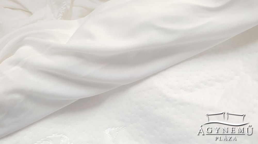A vízhatlan gumis lepedő felső rétegen, egy hagyományos puha lepedő található, maga a vízhatlan réteg pedig bevarrva a matracvédő alsó részébe, így teljesen komfortos kinézetet biztosítva a használójának. A matracvédő oldal borítása az egész matrac felületét beborítja. (nem pántos kialakítású)