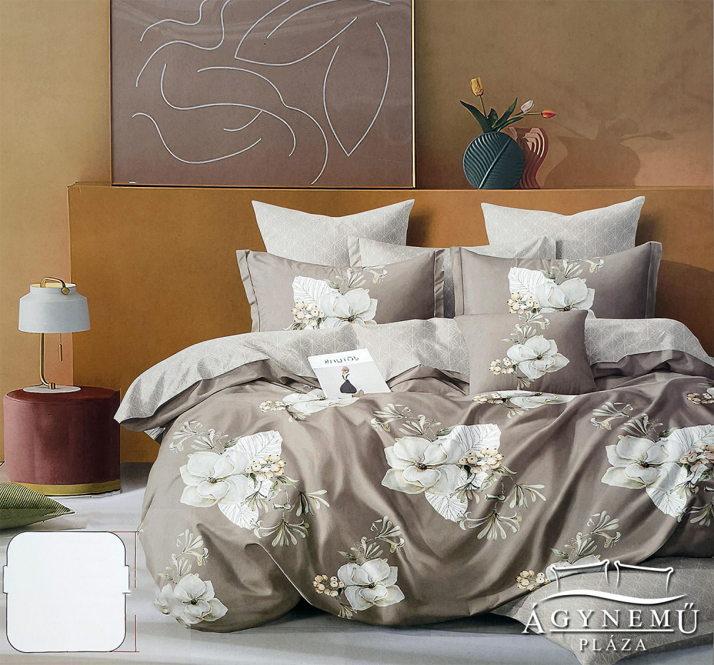3 részes ágyneműhuzat garnitúra, ágyneműhuzat szett, pamut ágynemű, barna Virágos ágynemű