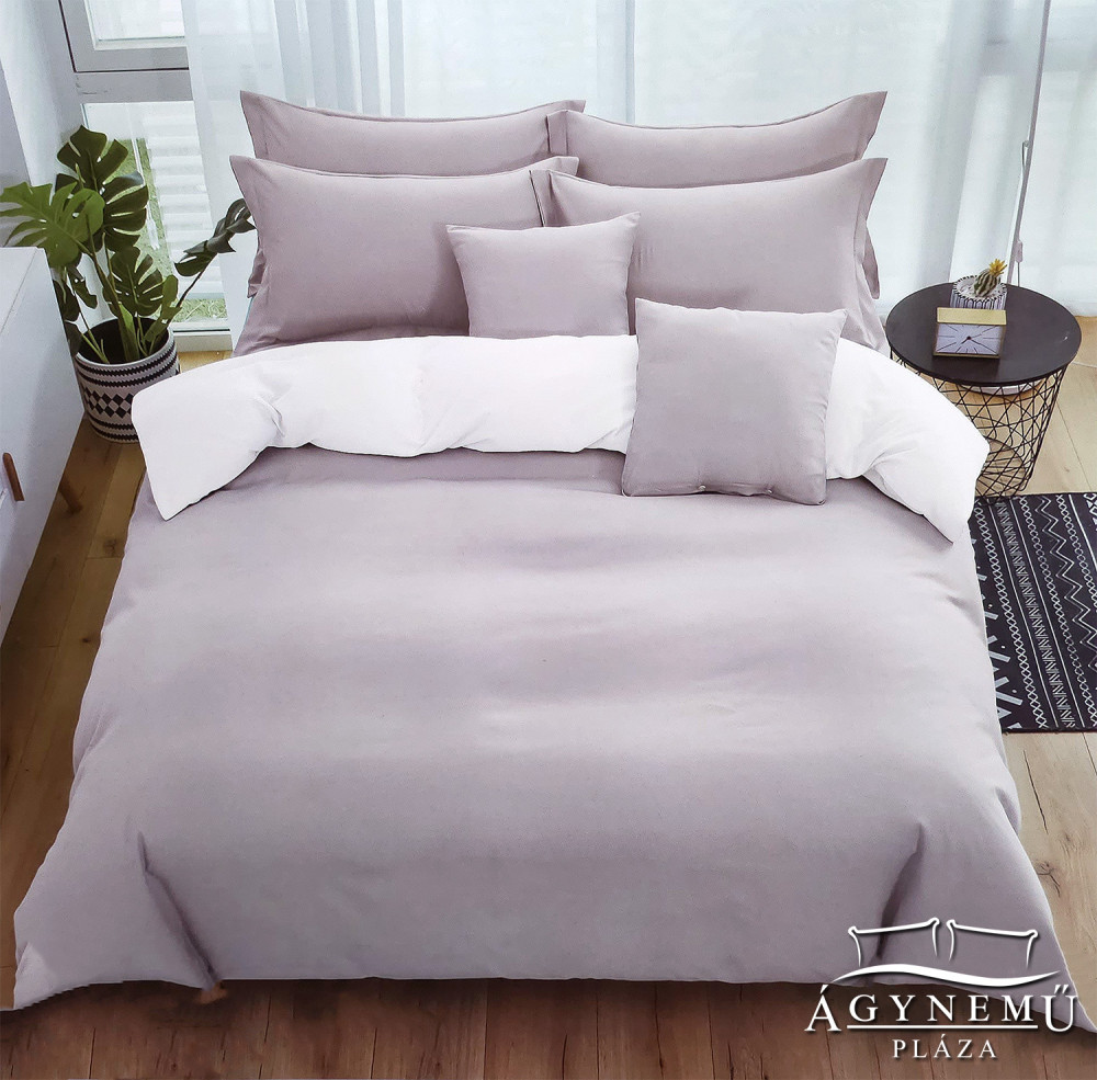 Kétszínű ágyneműhuzat garnitúra. Az ágynemű 2 egymáshoz illeszkedő, egymással harmonizáló szín kombinációja, amely igazán hozzásegíti az éjszakai, pihentető alváshoz. Emellett olyan valódi komfortérzetet biztosít a puha, finomtapintású pamut ágynemű révén, amelyet valóban csak egy igazán kiváló minőségű pamut ágynemű biztosíthat. Vastag pamut ágynemű anyagának köszönhetően pedig, akár mosás, majd szárítás után egyből felhúzható az ágyneműhuzat garnitúra, nem szükséges a vasalása. Gombos kivitelű, így a pamut dupla varrás mentén, nagyon gyorsan és könnyedén felhúzható. Különlegessége az ágyneműhuzatnak, hogy az ágynemű szett lepedő, hasonló színű, mint az ágyneműhuzat garnitúra színvilága. A 6 részes ágynemű szett, egy komplett franciaágyra tökéletes választás, ezen típus dupla nagy méretű, 220x200 cm méretű paplanhuzattal rendelkező ágynemű szett garnitúra.