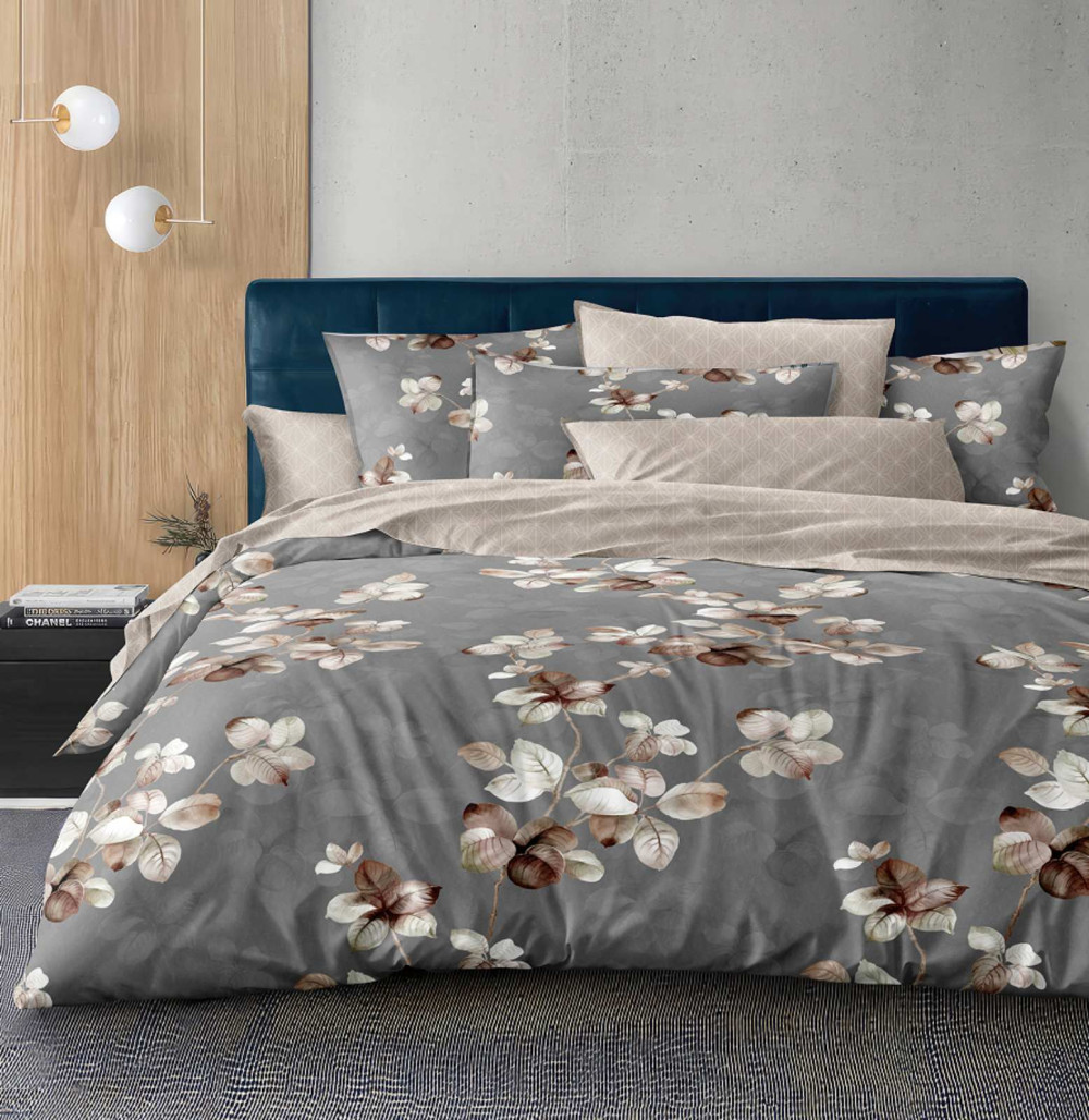 Ágyneműhuzat garnitúra, 7 részes ágynemű garnitúra szett, szürke Virágos ágynemű