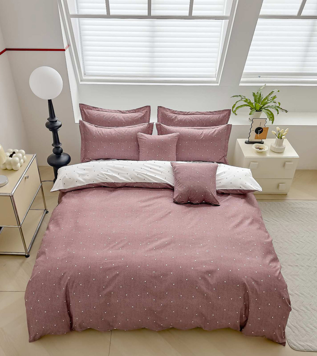 7 részes ágyneműhuzat garnitúra, modern kis pöttyös mintázattal. Hálószobánk legékesebb pontja, az ágyunk, ennek egyedisége pedig egy gyönyörű ágyneműhuzat garnitúrával lehet a legjobban előtérbe helyzeni.