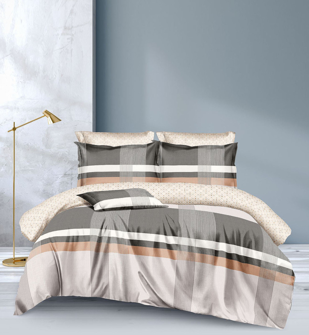 Ágyneműhuzat garnitúra, 7 részes ágynemű garnitúra szett, Barna csíkos ágynemű