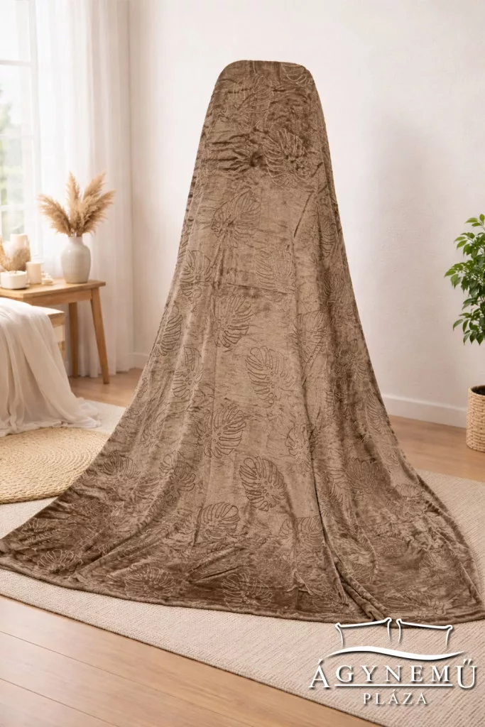 Ágytakaró pléd, nyomott mintás polár pléd, mikroszálas plüss pléd, 230x200 cm Barna pálmalevél