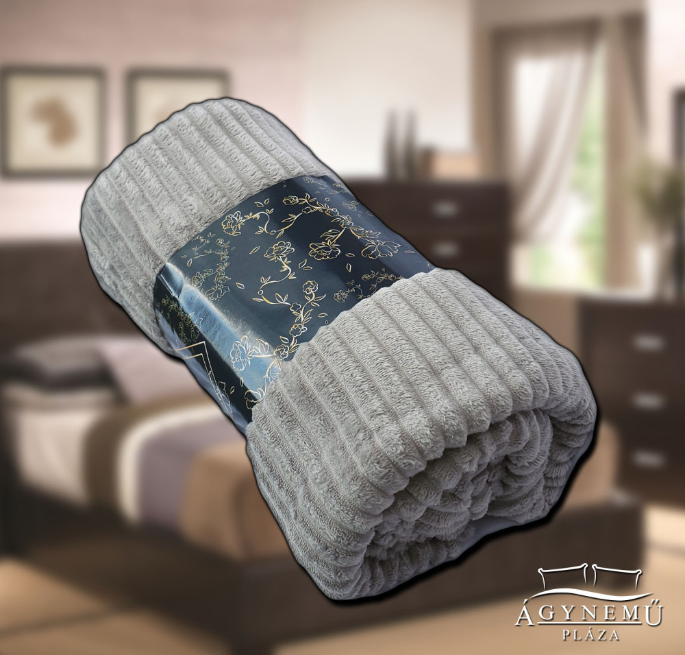Ágytakaró pléd, nyomott mintás polár pléd, mikroszálas plüss pléd, 230x200 cm Szürke csíkos