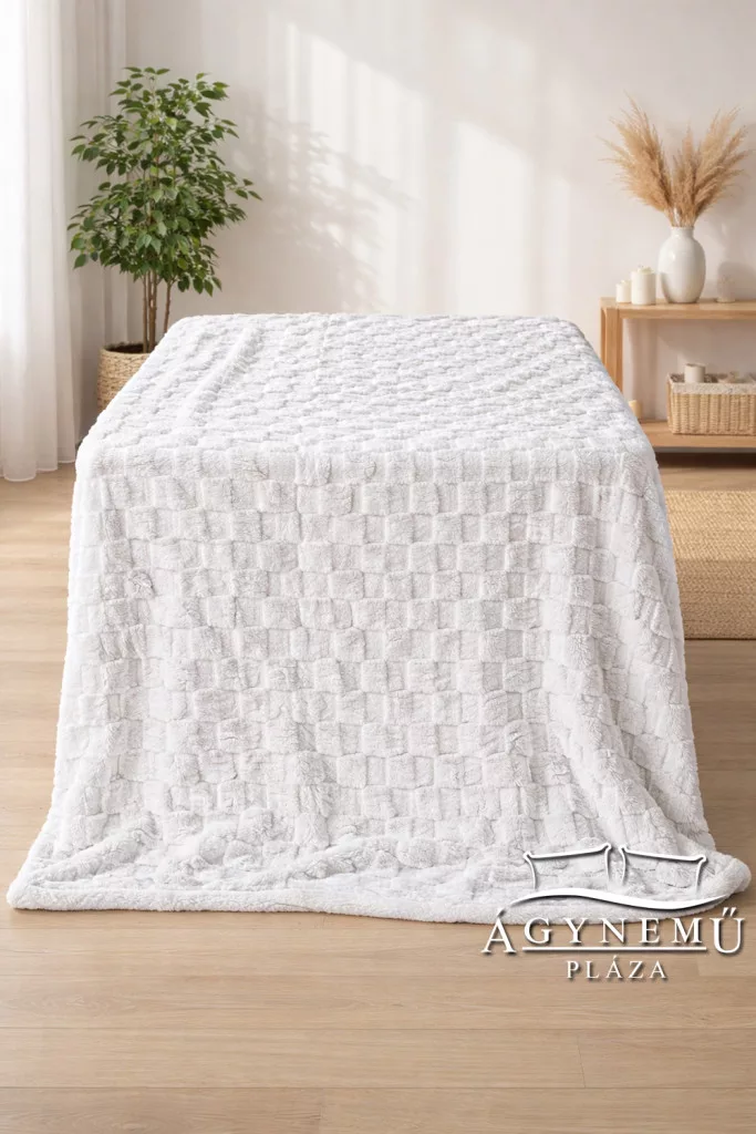 Krém fehér kockás polár pléd, és fehér Sherpa