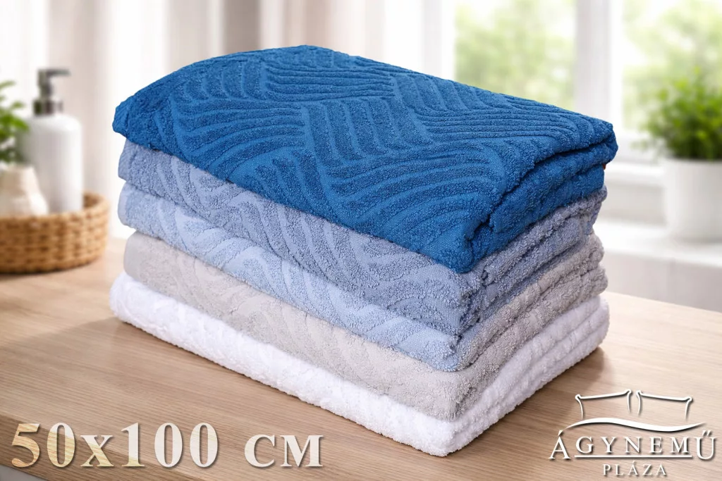 5 részes Frottír törölköző, 50x100 cm törölköző, nyomott mintás törölköző