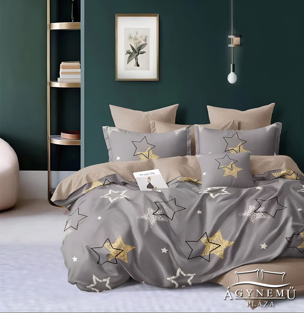 3 részes ágyneműhuzat, ágynemű garnitúra, pamut ágynemű szett, szürke nagy Csillag