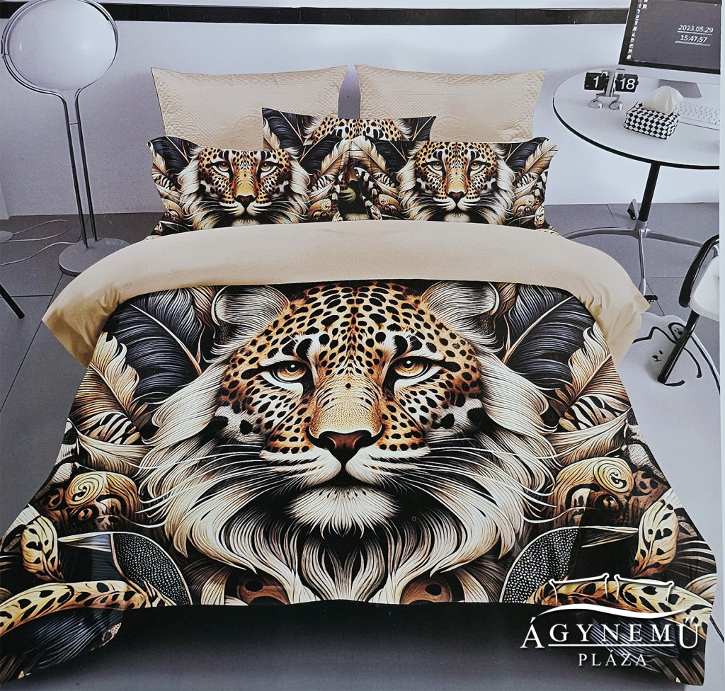 7 részes, kétszemélyes ágyneműhuzat garnitúra, modern vadállatos mintázattal, egyedi és szép ágyneműhuzat garnitúra. Az ágynemű garnitúra anyaga finom és puha, pamut ágynemű lévén pedig a pihenés is tökéletes eme pamut ágynemű garnitúrában.