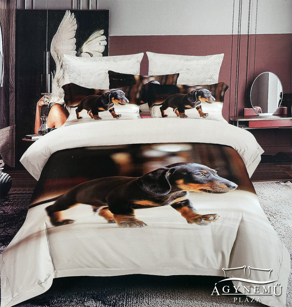 7 részes ágyneműhuzat garnitúra, ágynemű garnitúra szett, krém Tacskós ágynemű
